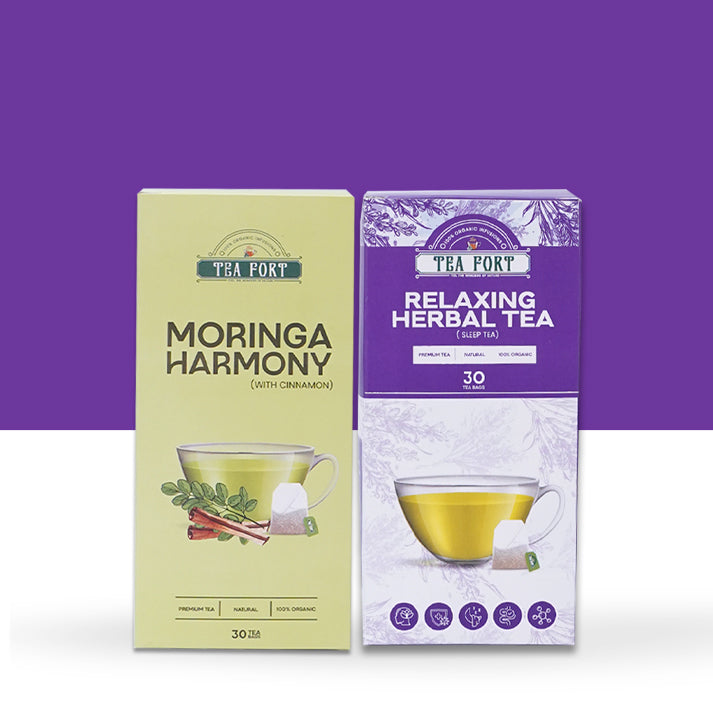 Moringa Delight with Cinnamon, a revitalizing mix of premium ingredients, crafted to energize, boost your mood, and support overall vitality. Relaxing Herbal Tea, a soothing blend of lavender, tulsi, and green tea. This calming infusion is carefully crafted to promote relaxation, improve sleep quality.