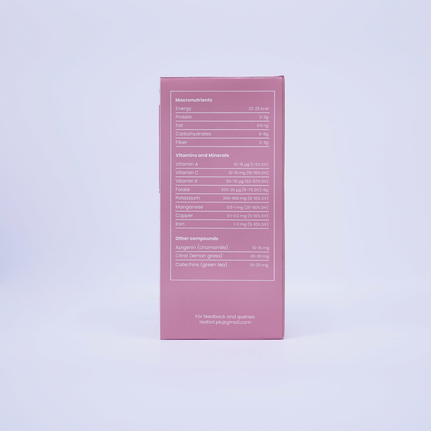 Experience the serenity of our Relaxing Herbal Tea. Sip slowly, breathe deeply, and let the soothing flavors take you to a state of tranquility. Your perfect Nighttime Ritual. Let go of all that stress with this soothing blend of lavender, tulsi, and green tea. This calming infusion is carefully crafted to promote relaxation, improve sleep quality, and support your overall well-being.